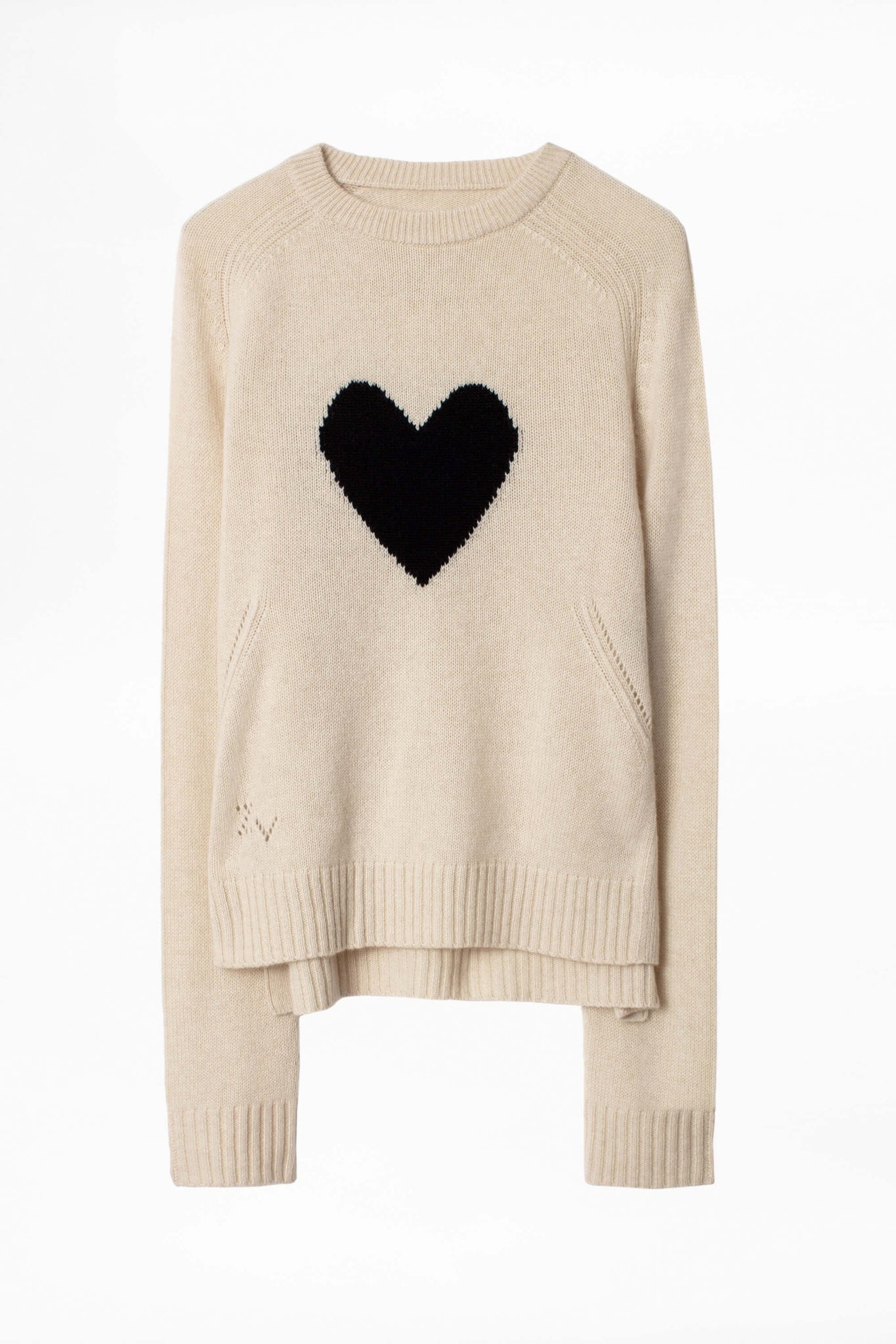 Zadig&Voltaire women’s beige, cashmere, heart and intarsia motif on the front, in cashmere.